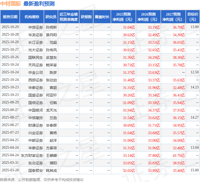 最新盈利预测明细如下: