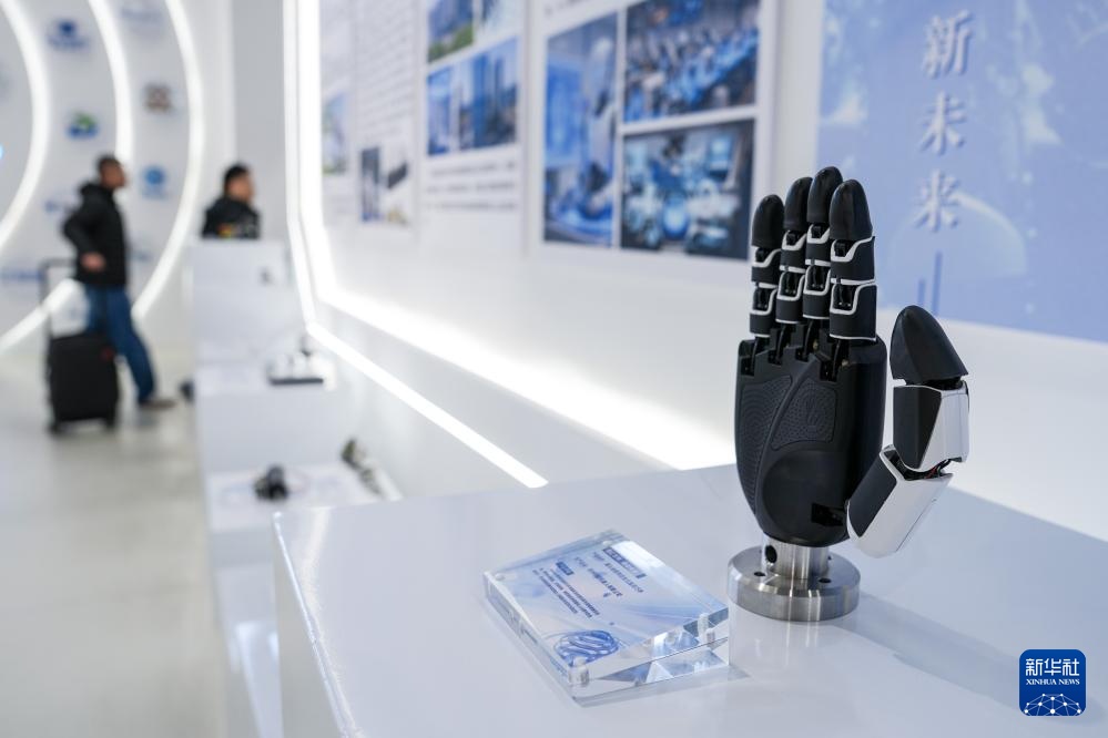 这是苏州市具身智能机器人综合创新中心内展示的“仿生五指灵巧手”(3月10日摄)。新华社记者 李博 摄