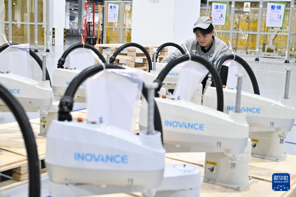 3月17日在位于南京市江宁开发区的汇川技术南京基地生产车间拍摄的机器人产品。新华社记者 季春鹏 摄